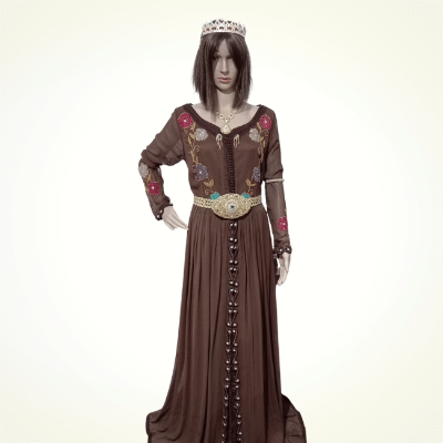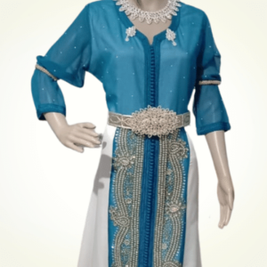 A caftan in summer colors, with stitching and modern touches for multiple occasions and a perfect design.
